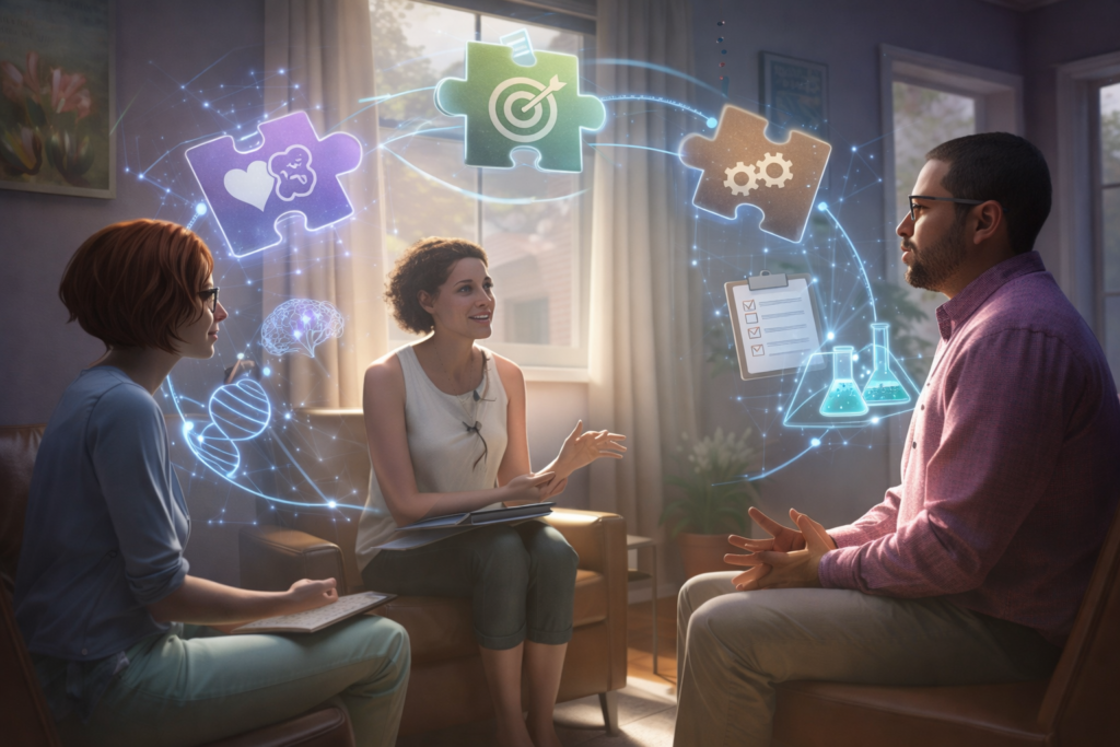 Cada acompanhamento é desenvolvido de forma individualizada, considerando história de vida, contexto social, objetivos e desafios do paciente.